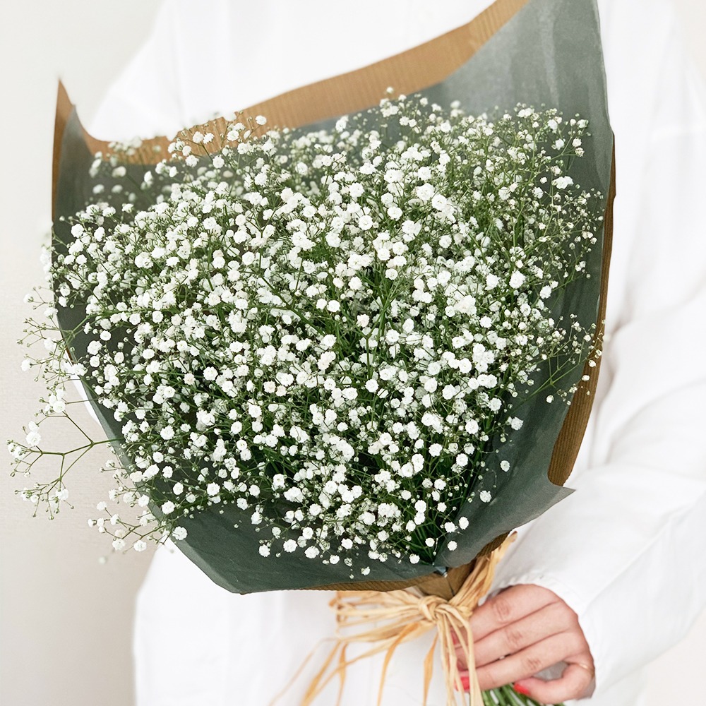 そのままカスミソウだけで飾るのはもちろん、他のお花とのコーディネートを考えるのも楽しいですね。ポップなあしらいを試してみるのも素敵。