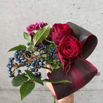 今週はこのボージョレ・ヌーヴォの解禁日に合わせて、素敵なディナータイムにふさわしい赤バラをメインに、とびきりシックな赤ワイン色のコーディネートでお届けしております♪
